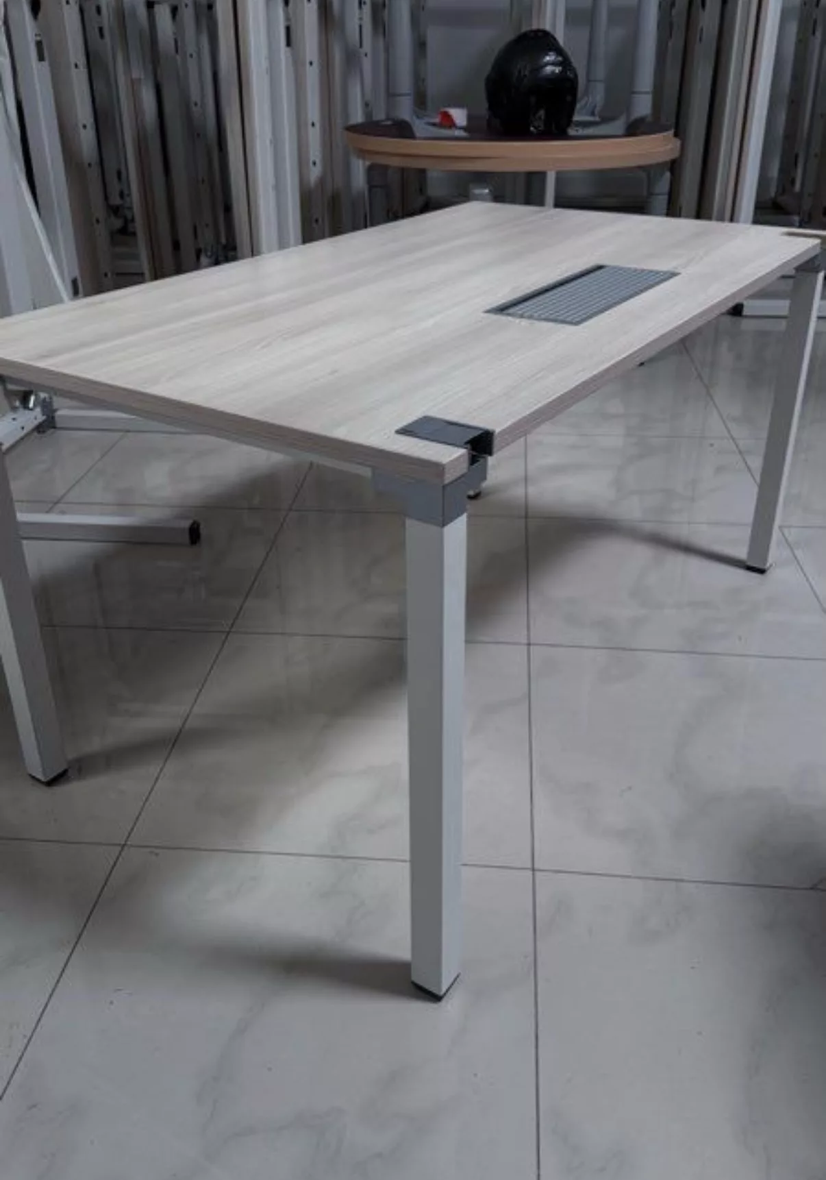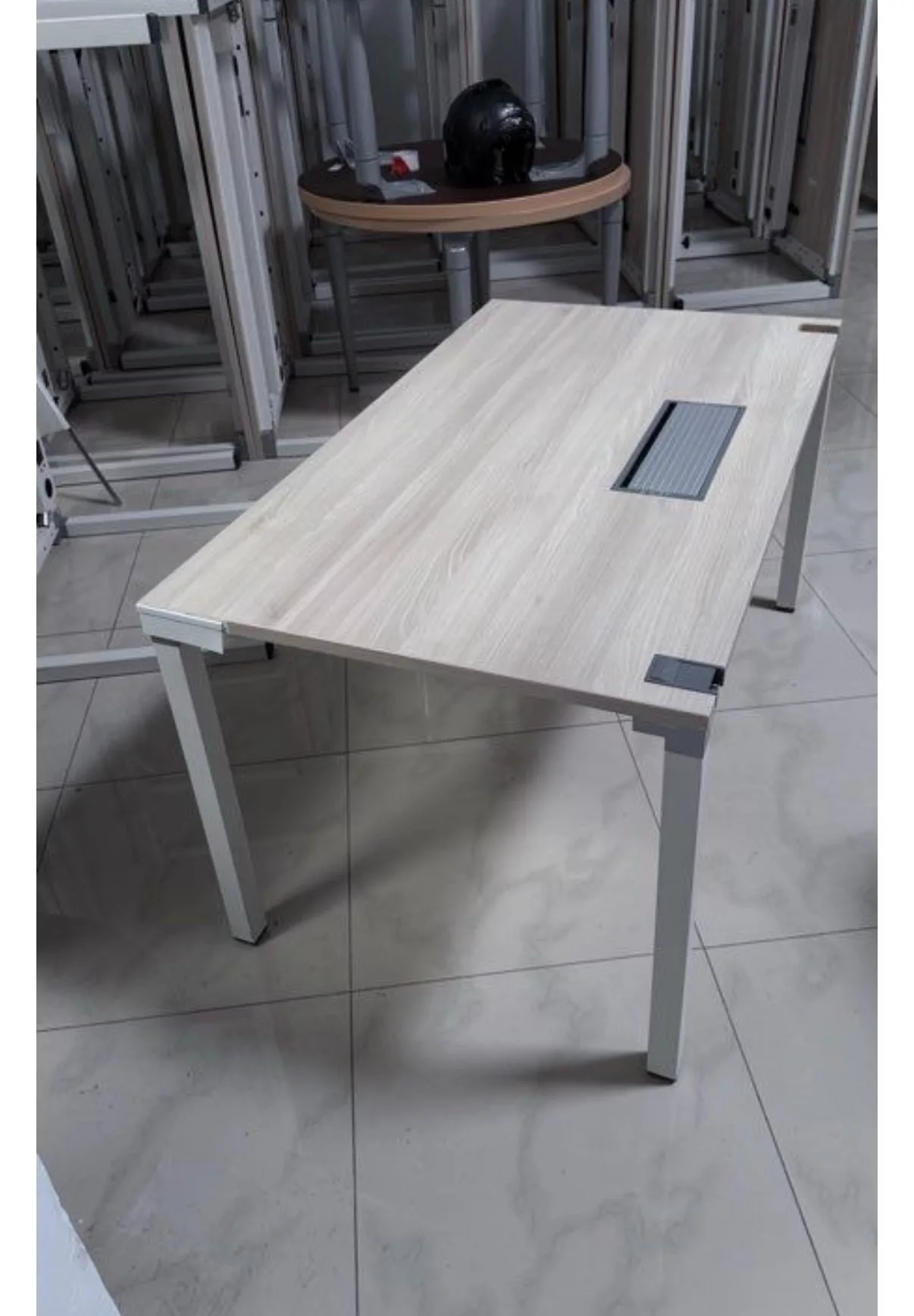 Le plateau est proposé en finition érable, une teinte claire et neutre qui apporte luminosité et sobriété à l’espace de travail. Cette finition s’intègre facilement dans tout type d’environnement professionnel, qu’il soit moderne ou plus classique.